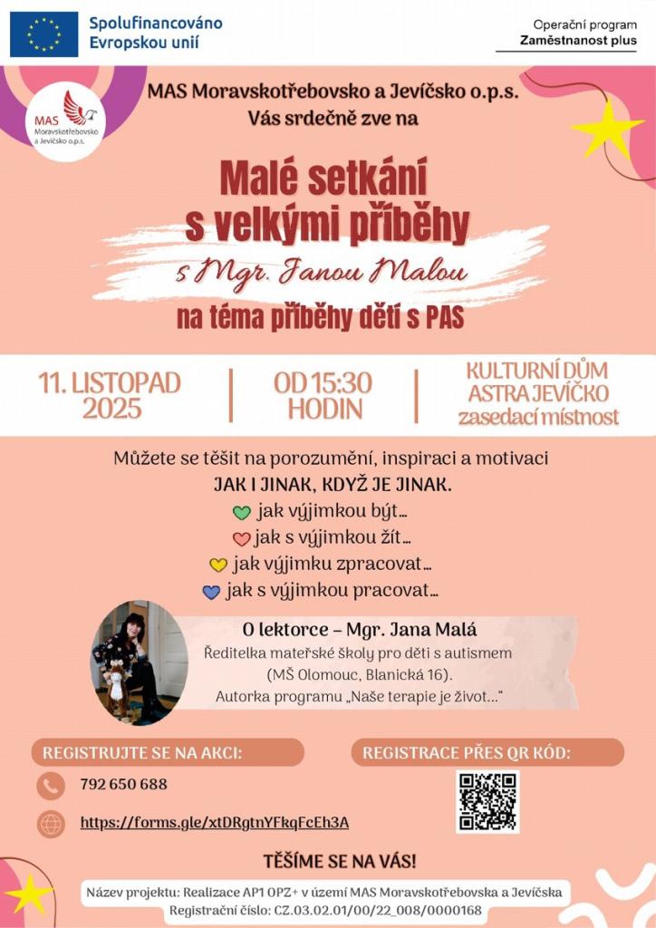 MAS MTJ Vás srdečně zve na setkání na téma příběhy dětí s PAS pod vedením Mgr. Jany Malé.