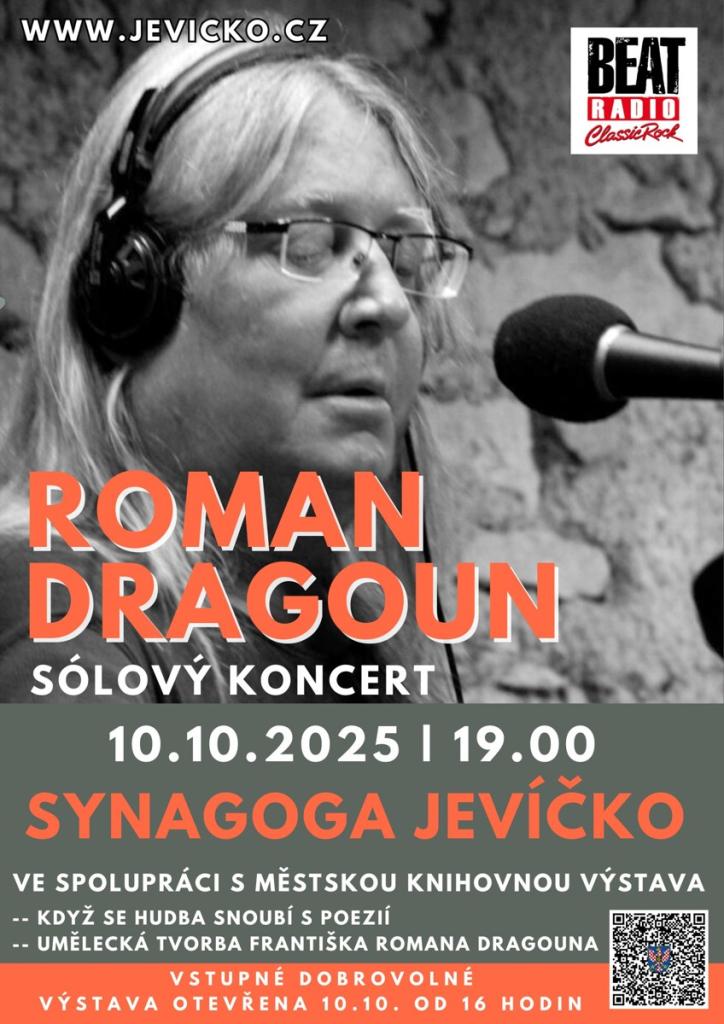 Zveme vás na sólový koncert české rockové legendy Romana Dragouna, který se uskuteční 10. října 2025 v 19 hodin v Synagoze v Jevíčku. Tento jedinečný koncert v sobě spojí hudbu a poezii a přinese posluchačům nevšední zážitek. Akce je pořádána ve spolupráci s Městskou knihovnou a slibuje příjemnou atmosféru pro všechny milovníky umění. Součástí koncertu bude i výstava umění Františka Romana Dragouna a sbírky hudby a poezie. Roman Dragoun je zpěvák, skladatel a klávesista působí na hudební scéně od poloviny sedmdesátých let. Žánrově se Dragounova hudba blíží řečišti, ve kterém se pohybují např. Sting, Stevie Wonder nebo Phil Collins. Prostě melodická hudba s prvky jazzu, funky a rocku, kterou dokreslují duchovně-poetické texty, jejichž autory jsou převážně Romanův otec, akademický malíř František Roman Dragoun a písecký básník Milan Princ. Je to hudba určená pro citlivé a vnímavé posluchače všech generací.